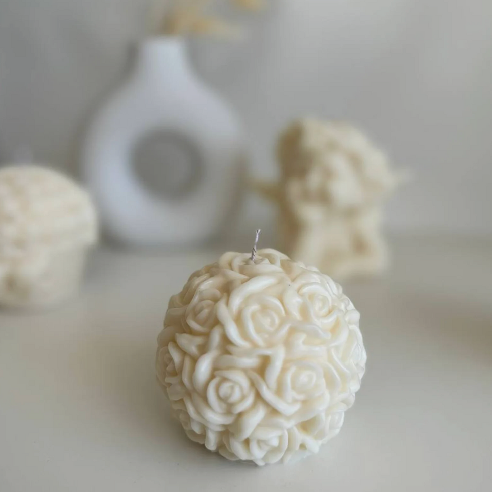 This candle is a true work of art that transports you to a world of sophisticated roses and exquisite beauty. It has the shape of a detailed rose ball that blooms in all its glory. Each petal is made with attention to detail, forming a harmonious composition.
